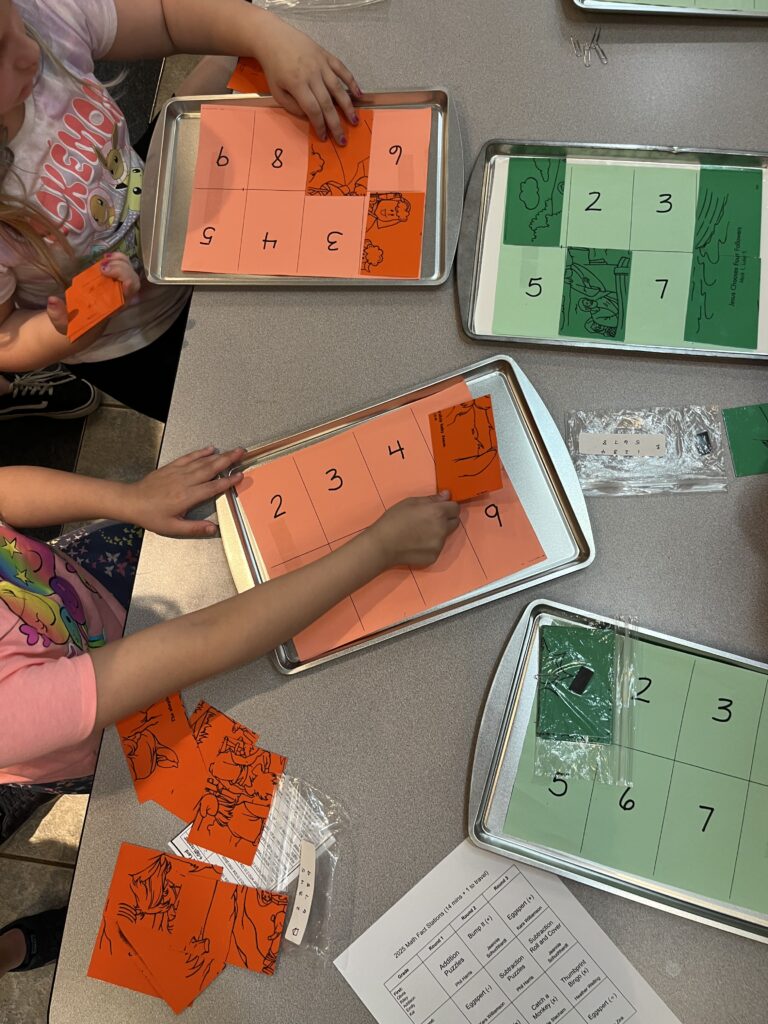 Math Camp is an annual event held on the first Friday in May. Grades Preschool-6 can participate and grades 7-8 act as helpers. We have a cookout, sundae bar, and fun math games. The students also use math skills to figure out the costs of their meals and sundaes with difficulty based on grade level. Depending on weather, the evening concludes with a family camp out on our back field. In the morning, we have breakfast where the students once again put their math skills to work. This is an event that the kids look forward to every year.